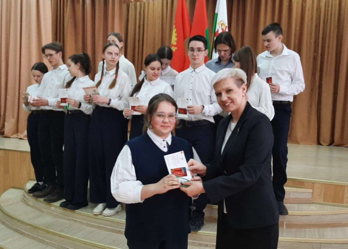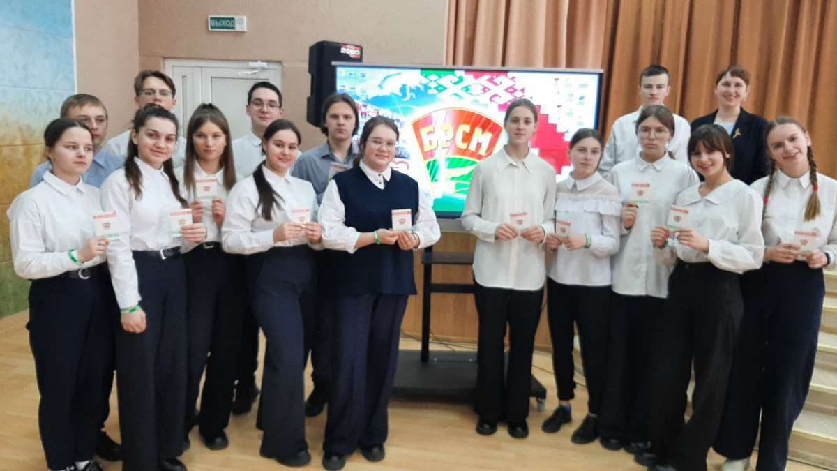 В торжественной обстановке учащиеся попрощались со своим главным атрибутом – пионерским галстуком, который с гордостью носили несколько лет. Членские билеты и значки ОО «БРСМ» ребятам вручила Аврамчик Е.Ю., первый секретарь ОО «БРСМ» Березинского районного комитета.
