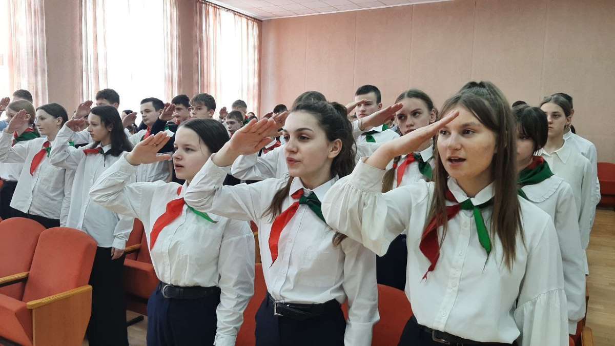 ✅Сегодня, 19.02.2024 года, в ГУО ”Средняя школа №2 г. Березино“ прошла торжественная церемония прощания с пионерским галстуком и вступления в ряды ОО «БРСМ».