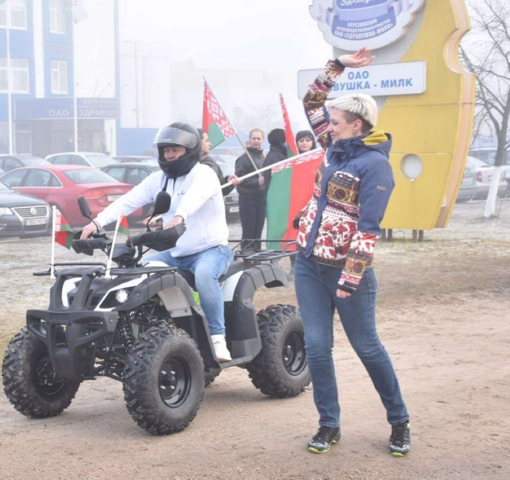 Да, акцию активно поддержала и молодежь Березинского района. С флагами, бодрая пришла она сопроводить колонну техники. А некоторые даже приехали на мотоцикле либо квадроцикле.