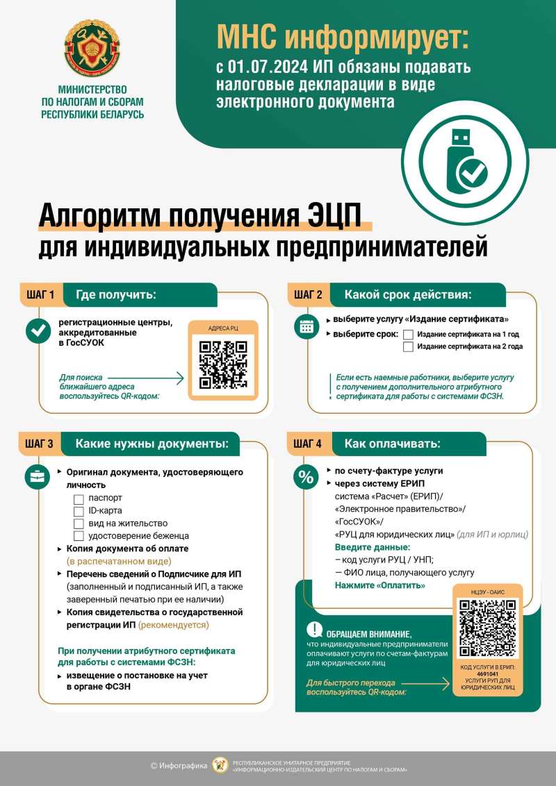 МНС информируетавтором adminв Актуальное, Информация ИМНС, Информация отдела Экономикивкл Опубликовано 1 мая, 202422 июля, 2024 с 01.07.2024 ИП обязаны подавать налоговые декларации в виде электронного документа