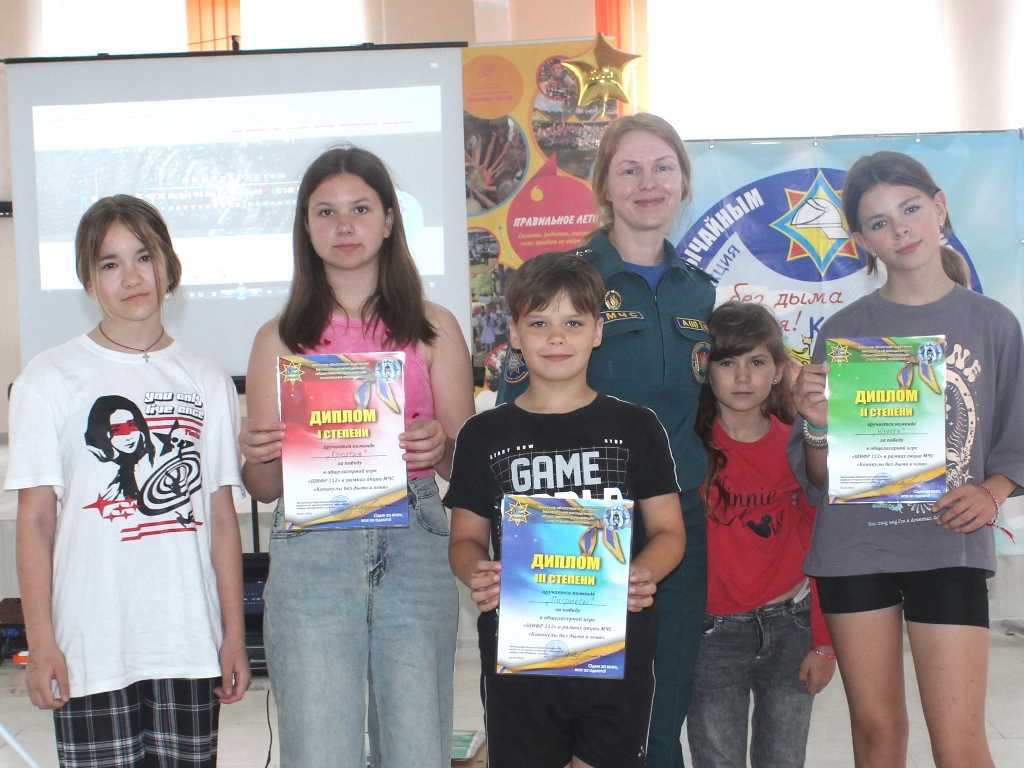 Началось мероприятие с разговора с инспектором пропаганды Ольгой Ермаковой. Вместе с детьми мы вспомнили пять шагов спасения при пожаре, порассуждали об опасных местах для игр, вспомнили значение знаков эвакуации, разгадали все тайны игры «Медиаазбука», посмотрели фильм «Энциклопедия безопасности: пожар в квартире». А чтобы подвижная и любознательная детвора не заскучала, детям предложили общелагерную игру «Шифр 112».