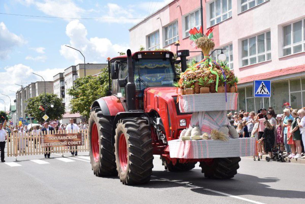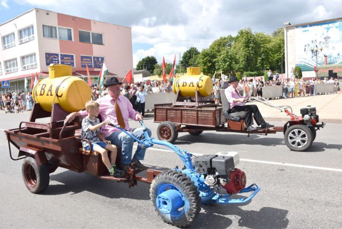 В праздничной колонне идут депутаты сельских исполнительных комитетов, руководители сельскохозяйственных организаций и их коллективы
