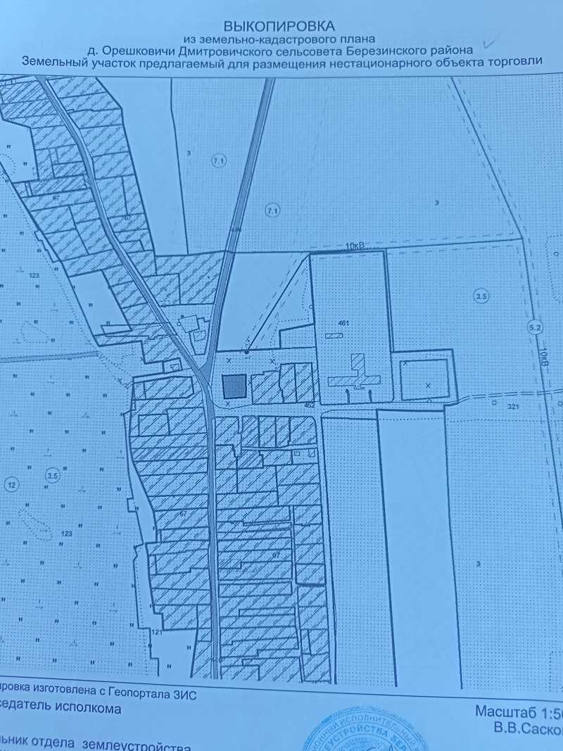д. Орешковичи, пер. Школьный (по направлению к бывшему зданию Орешковичской СШ, рядом с пересечением автодорог Н8012 (Орешковичи-Новоселье) и Н8100 (Новоселье-Черновка-Дмитровичи) |