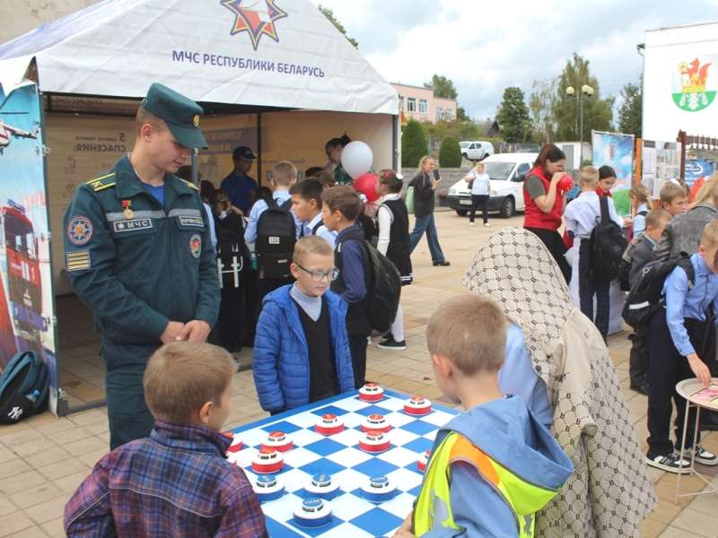 После обеда на площади перед Березинским районным центром культуры объединились усилия одиннадцати служб и ведомств района. Районные спасатели развернули целый городок безопасности, где играли с детьми и взрослыми, знакомили людей с пожарной техникой.