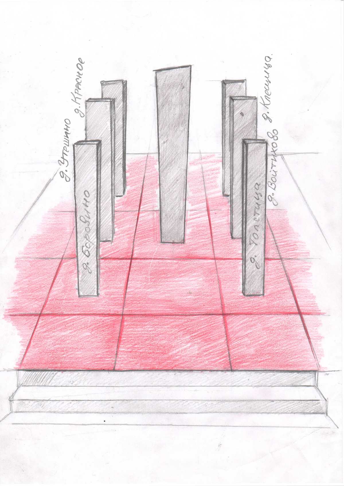 1этап — подготовительный Разработка проекта мемориала-памятника; 2 этап — основной Реализация проекта: — определение территории установки мемориала-памятника; — изготовление мемориала-памятника в виде памятных 6 Стелл с названиями деревень и 1 мемориальной плиты общего характера; — установление. 3 этап — завершение проекта — торжественное открытие мемориала-памятника; — проведение патриотических акций с подключение молодого поколения. |