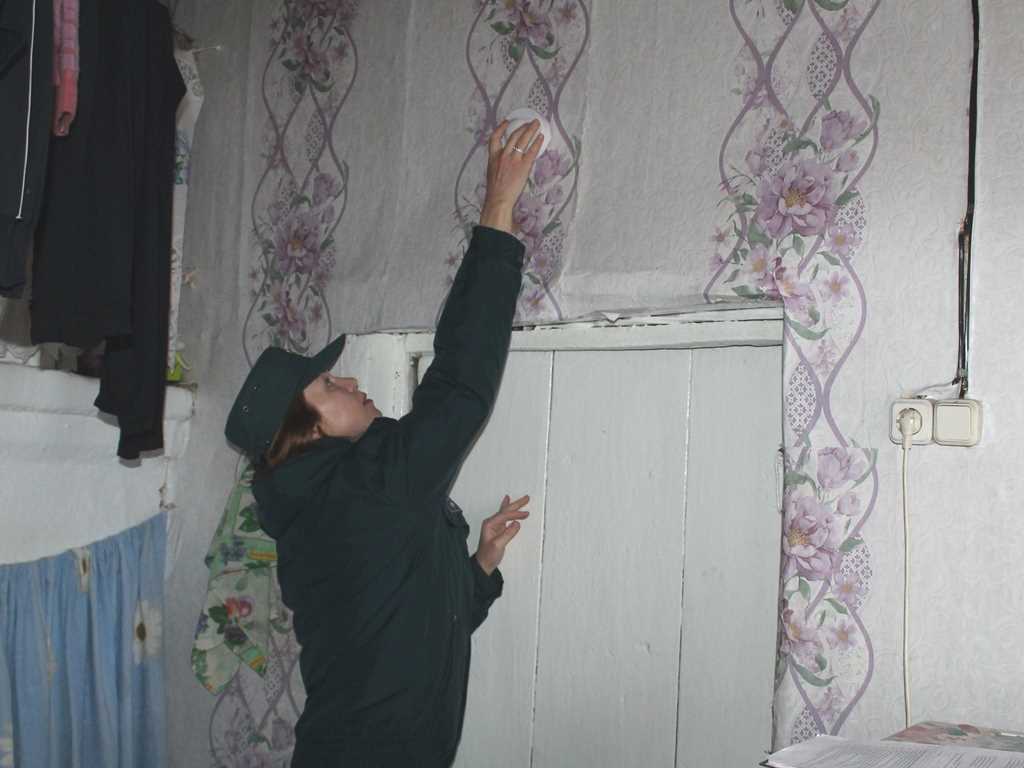В другом доме недостаток устранили на месте – хозяйке выдали батарейку для пожарной сигнализации и закрепили ее на стене.