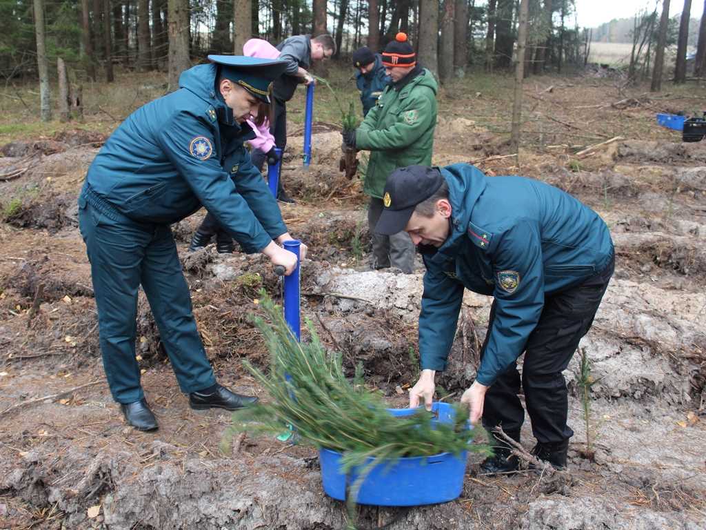 Свой посильный вклад в развитие лесного богатства нашей страны внесли сегодня березинские спасатели. На территории Березинского опытного производственного лесничества недалеко от деревни Положино коллектив райотдела по чрезвычайным ситуациям трудился на посадке молодых елей. Как известно, лес намного быстрее восстанавливается, если ему помогать. К республиканской акции «Дай лесу новае жыццё!» уже присоединилось немало помощников из разных организаций района.