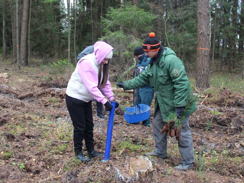 После проведенного инструктажа о правилах работы с инструментом и саженцами дружный «десант» принялся за работу. Понимая важность дела, трудились с азартом и хорошим настроением. Радовала и погода: в лесу было очень спокойно и комфортно.