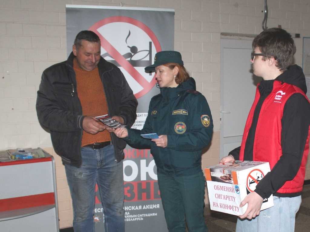 Особое внимание инспектор обратила на наличие в домовладении автономного пожарного извещателя. Каждому участнику акции рассказали о недавнем пожаре в деревне Михеевичи Березинского района, когда жертвой огня едва не стал нетрезвый курильщик: посреди ночи мужчина смог проснуться от запаха дыма и покинул горящий дом самостоятельно. Все участники акции получили буклеты «Не прожигай свою жизнь!», «Ваш безопасный дом».