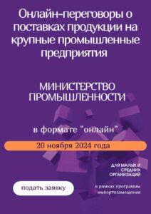 20 ноября 2024 года с 11:00 до 13:00 часов в рамках контактно – кооперационной биржи планируется проведение онлайн-переговоров с ОАО «Институт БЕЛОРГСТАНКИПРОМ», ОАО «Станкозавод «Красный Борец», ОАО «СтанкоГомель», ОАО «Станкостроительный завод им. С.М.Кирова», ОАО «МЗАЛ им. П.М. Машерова», ОАО «МЗОР», ОАО «ВИСТАН», ОАО «МИСОМ ОП», ОАО «Гомельский завод станков и узлов», ОАО «Барановичский завод станкопринадлежностей», ОАО «БелТАПАЗ», подведомственными Министерству промышленности Республики Беларусь. Срок приема заявок: до 19 ноября 2024 года.