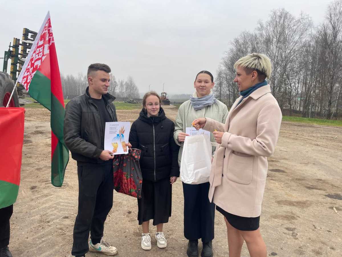 Со словами поздравления с Днем работников сельского хозяйства и перерабатывающей промышленности агропромышленного комплекса активисты БРСМ «Погостская средняя школа Березинского района» и первый секретарь Березинского РК ОО «БРСМ» Екатерина Аврамчик поздравили на рабочем месте Радиона Карповича -молодого специалиста ОАО «Погостский».