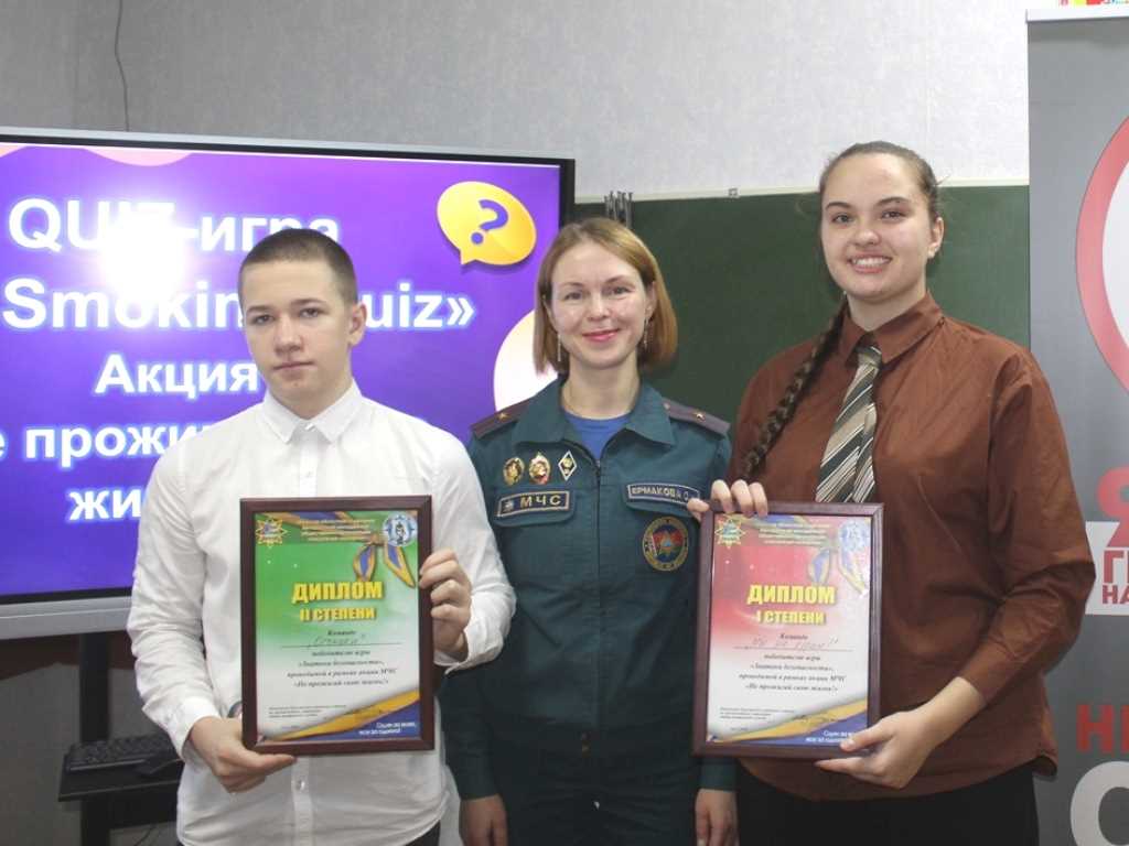 Инспектор пропаганды Березинского райотдела по чрезвычайным ситуациям Ольга Ермакова провела с детьми игру «No Smoking Quiz»: ребята проявляли свои знания, работая в командах. По итогу мероприятия детям вручили буклеты «Не прожигай свою жизнь!» и «Безопасная эвакуация». Главное в данной игре – не победа, а те знания, которые получили школьники. Вопросы викторины в ненавязчивой форме подтолкнули молодежь к осознанию зла, которое таится на кончике сигареты: это и вред для здоровья, и опасный фактор возникновения пожара.