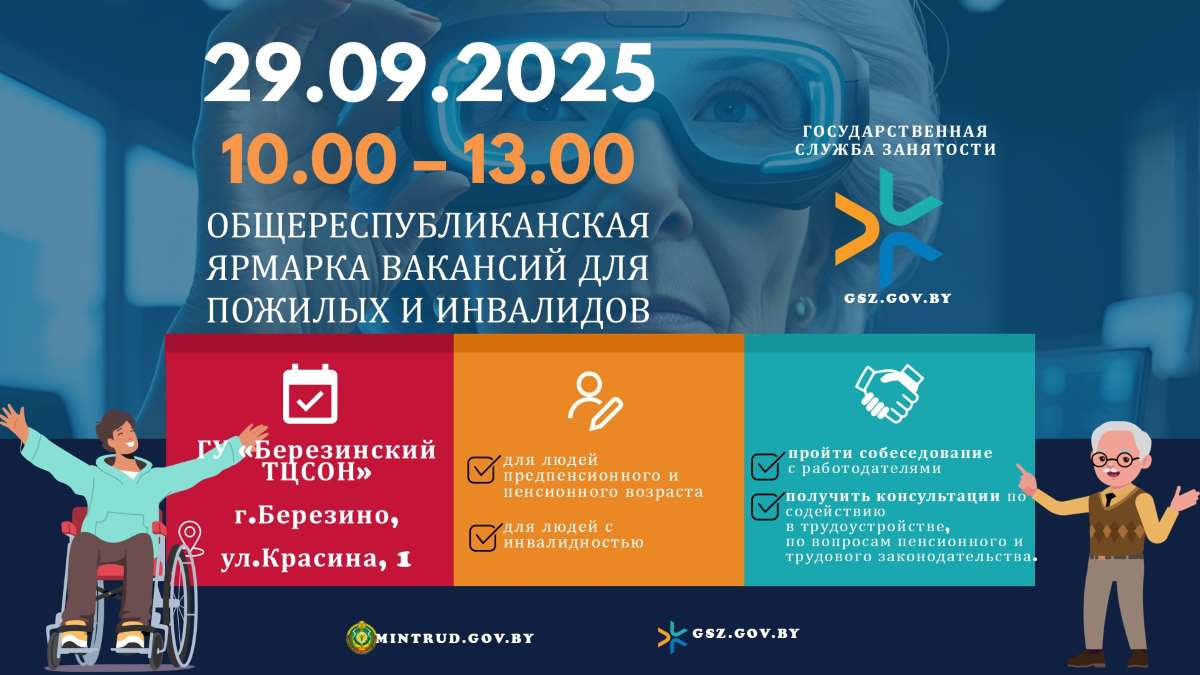 ОБЩЕРЕСПУБЛИКАНСКАЯ ЯРМАРКА ВАКАНСИЙ ДЛЯ ПОЖИЛЫХ И ИНВАЛИДОВавтором Berezinoв Актуальное, Новости Служба Занятости, Новости управлениявкл Опубликовано 8 сентября, 2025