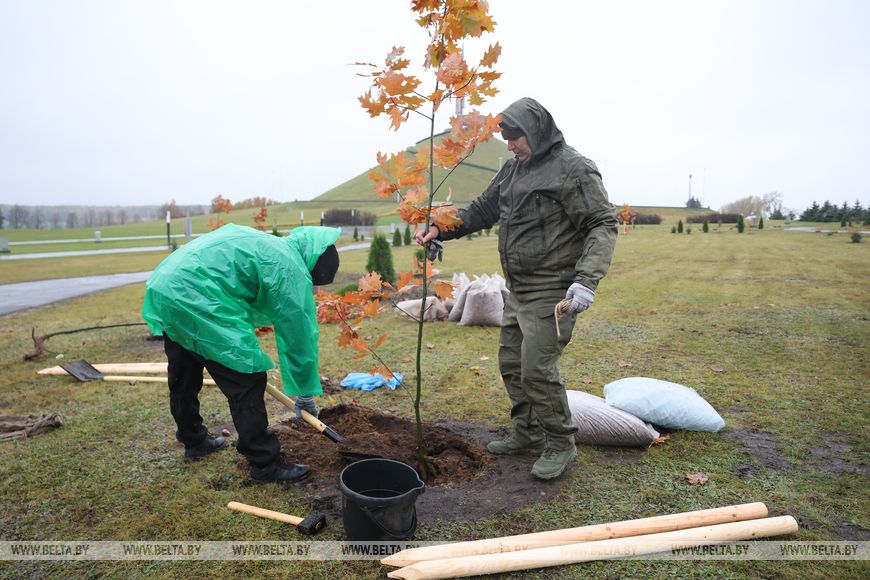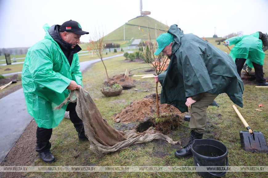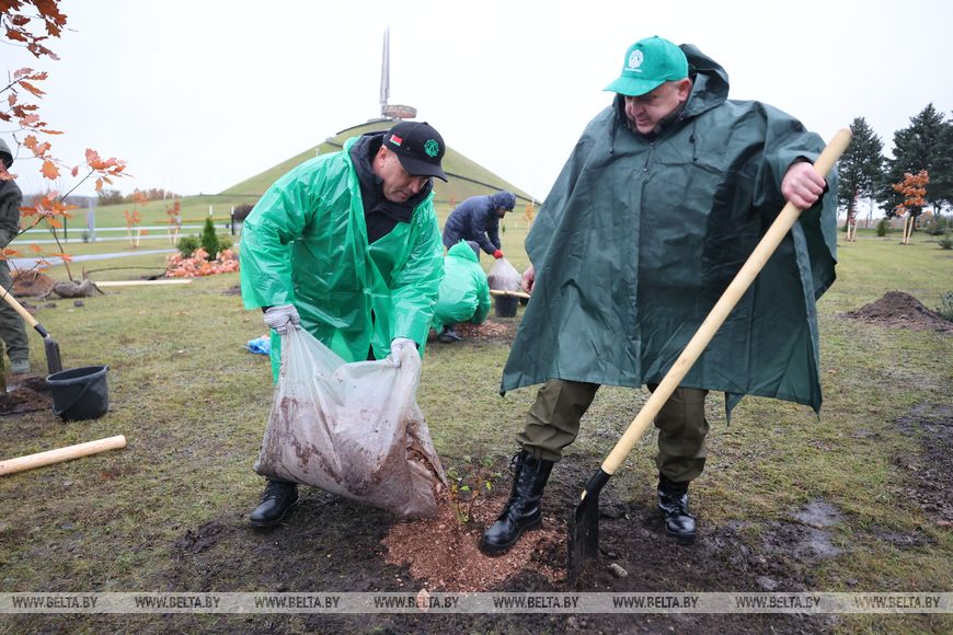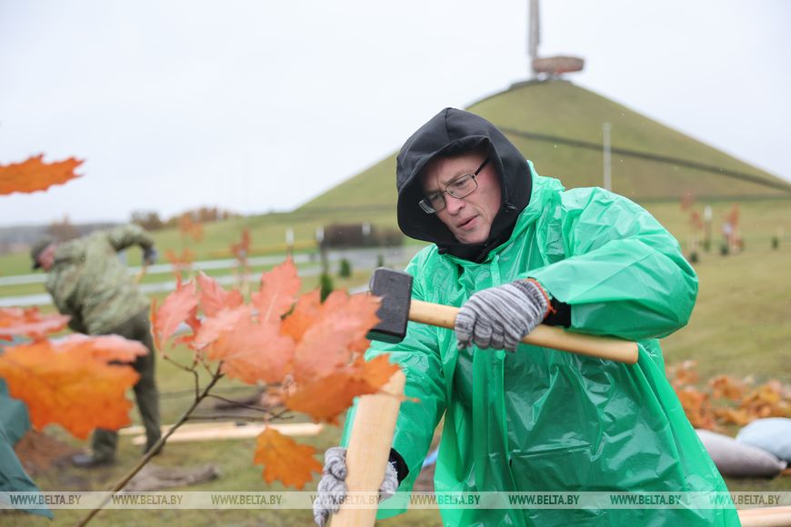 Трудовой десант из 60 человек, а это представители Минского облисполкома, лесоводы, рабочая молодежь и воспитанники военно-патриотических классов, высадился сегодня на территории мемориального комплекса «Курган Славы». По поручению Президента, который посещал мемориал в ходе празднования Дня Независимости, этой осенью здесь было принято решение реализовать проект по закладке парка. К его созданию подошли творчески: из трех предлагаемых концепций была выбрана самая оригинальная.