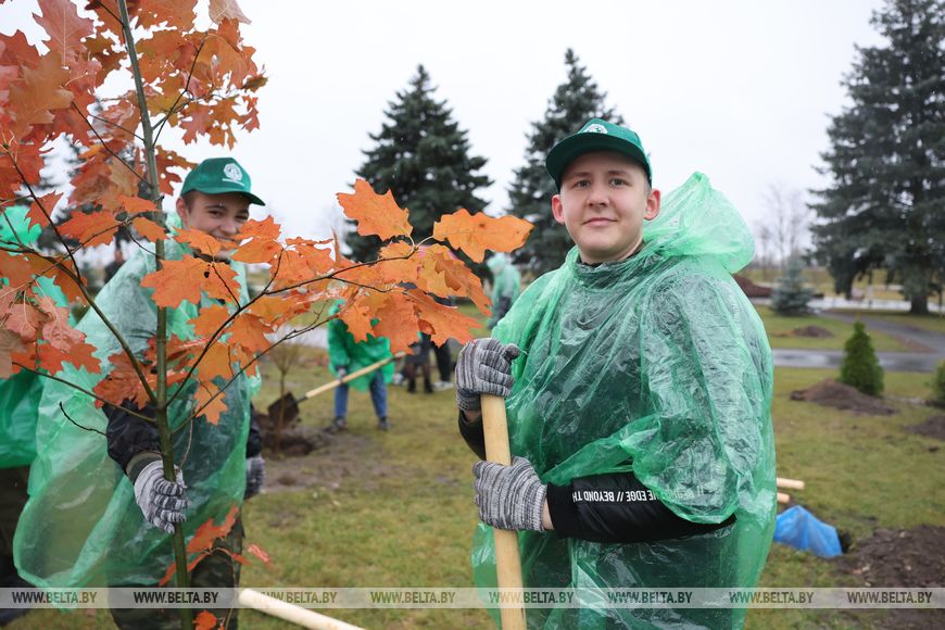 Плечом к плечу со взрослыми на благо страны потрудились и воспитанники военно-патриотических классов из Борисова. Среди них — Владимир Юркевич из СШ №7. Пот его словам, опыт посадки деревьев у него уже есть. «В профильном классе учусь второй год, и это не первая моя трудовая вахта. Много помогаем своей школе, работали на благоустройстве. То, что я сегодня здесь, многое значит в моей жизни. Теперь, приезжая на мемориал, буду наблюдать, как растут посаженные мной деревья. Я покажу их ребятам, а затем своим детям», — поделился Владимир.
