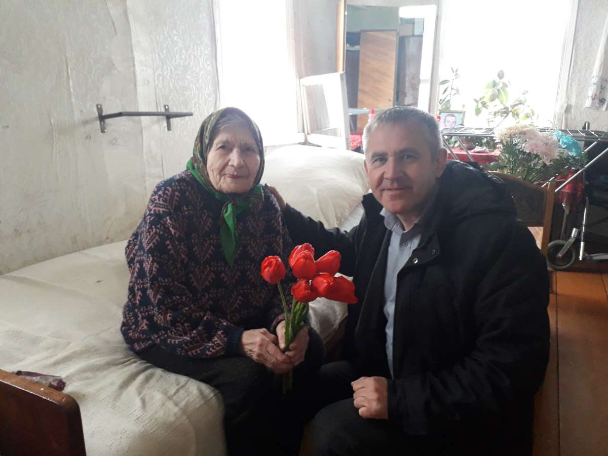 Сегодня председатель Березинского сельского исполнительного комитета Болсун Александр Кузьмич поздравил с Днем Победы узницу Борисевич Софию Афанасьевну проживающая в д. Светлица.