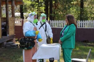 слаженно работать в очагах химического и комбинированного поражения, инфекционного заболевания, также показывают теоретическую подготовку.