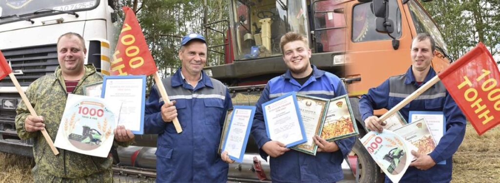 В понедельник на поле ОАО «Пагостский» состоялся настоящий праздник: чествование лучших хлеборобов, которые добились высоких результатов труда и первыми преодолели тысячный рубеж. А таких здесь было целых четыре человека: комбайновый экипаж в составе Вячеслава Кашлачева и его помощника Артема Татаронка, а также водители — Александр Зязюля и Виталий Семашкевич. Все они являются работниками ОАО «Пагостский».