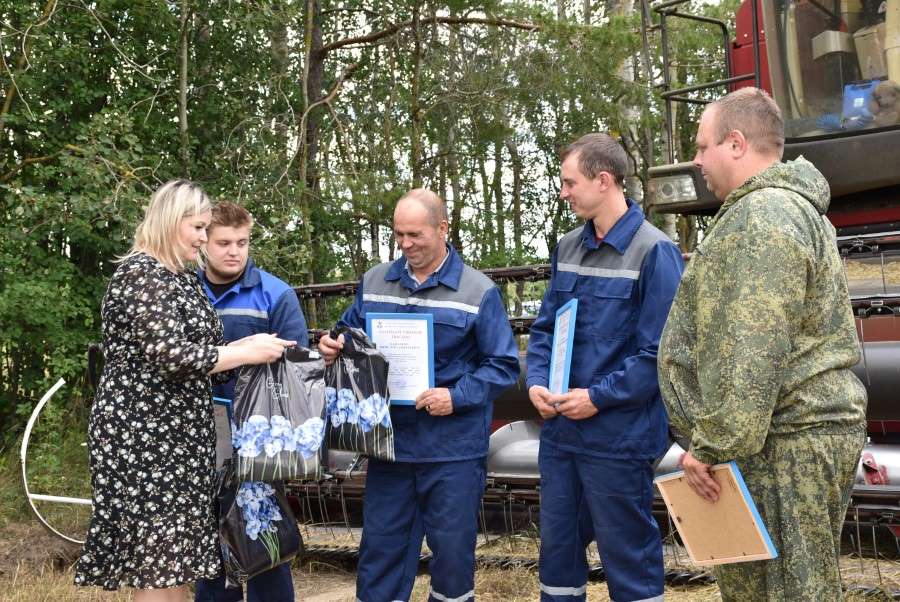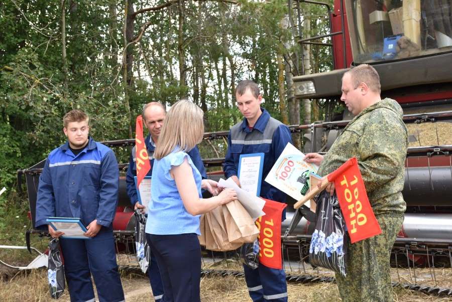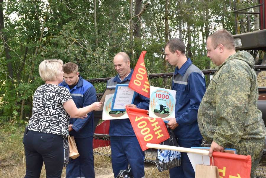 — Очень приятно поздравить вас сегодня. Хочется пожелать, чтобы ваша работа прошла без травм, ведь сегодня у вас очень ответственная и напряженная пара, и делать это нужно достойно. Уверен, что это только начало большой победы, и после первой тысячи на счетах комбайнеров и шоферов появится вторая и третья. Спасибо за трудовую победу!