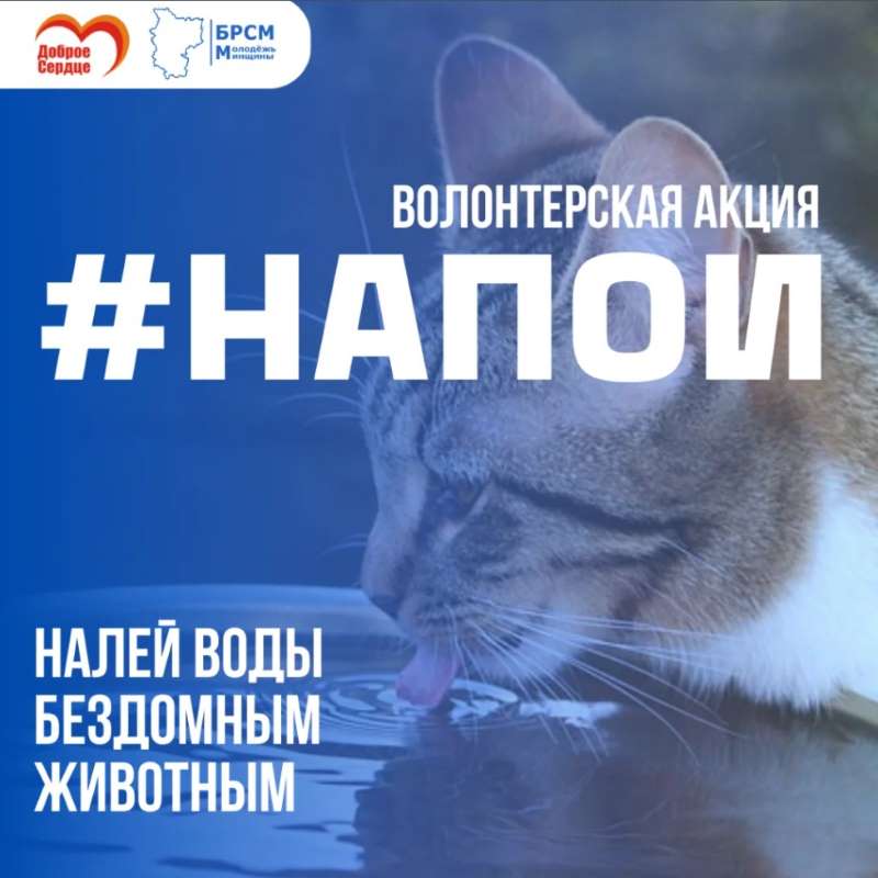Комитет ОО «БРСМ» запускают акцию «#НАПОИ». Ее цель — помочь бездомным животным во время аномальной жары.