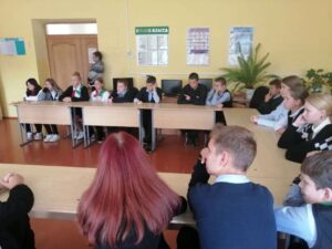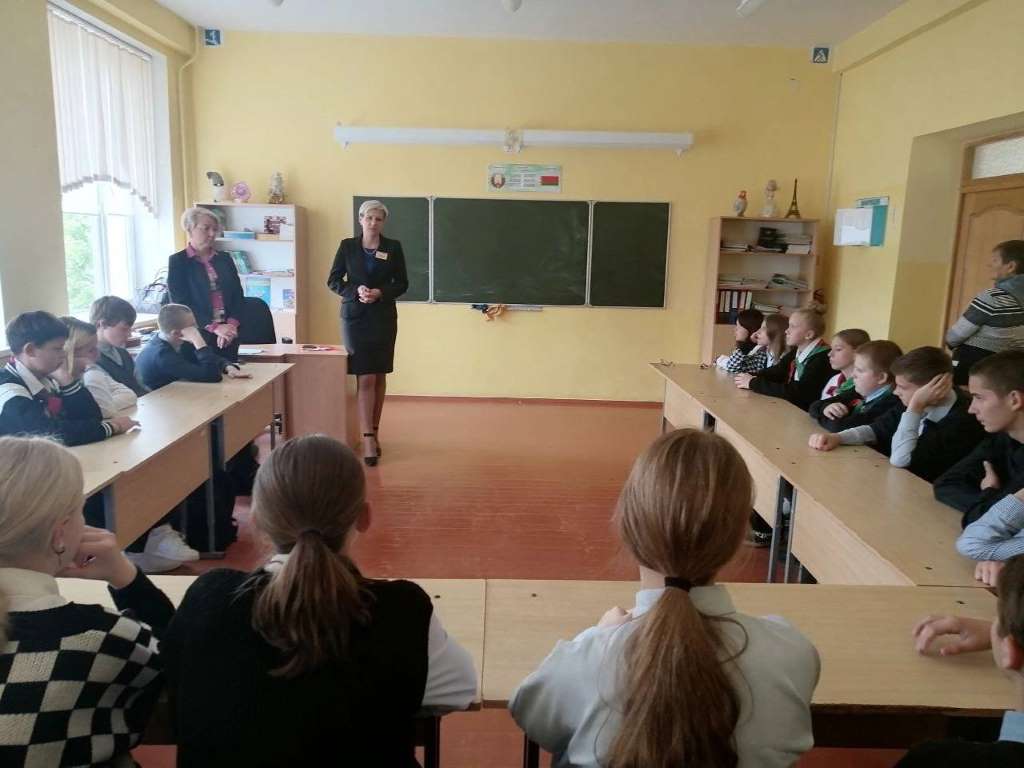 Екатерина Аврамчик рассказала восьмиклассникам об основных направлениях деятельности организации, о тех мероприятиях, проводимых в районе, которые помогают молодым, активным и креативным юношам и девушкам проявить себя в различных видах деятельности – в творчестве, спорте и т.д. Она подчеркнула, что такие организации БРСМ – это настоящая школа жизни, которая дает все возможности для всестороннего развития личности. И одна из их особенностей – преемственность поколений. Даже в рамках сообщества младшим всегда важна поддержка и пример со стороны старших товарищей. Было отмечено и то, что для организации очень важно, чтобы молодые люди сами проявляли активность, не боялись озвучивать свои инициативы – только так возможно успешное сотрудничество и развитие.