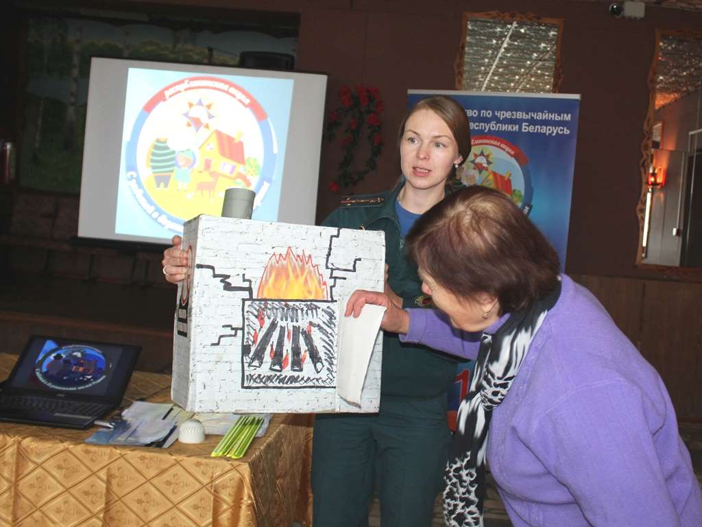 В уютном зале ГУК «Новинский сельский дом культуры» работники Березинского райотдела по чрезвычайным ситуациям провели мероприятие в рамках акции «С заботой о безопасности малой Родины». Местным пожилым людям, работникам культуры и школьникам рассказали о причинах пожаров, продемонстрировали фильм, напомнили о важности установки в домах пожарных извещателей и о номерах телефонов экстренных служб. С детьми провели «экзамен» по безопасности и игру «Звоним в МЧС». Далее всех ожидал конкурс частушек безопасности, которые исполнили работники дома культуры. Чем может закончиться курение в постели, почему опасно выжигать сухую траву, как уберечь себя в гололед – эти и