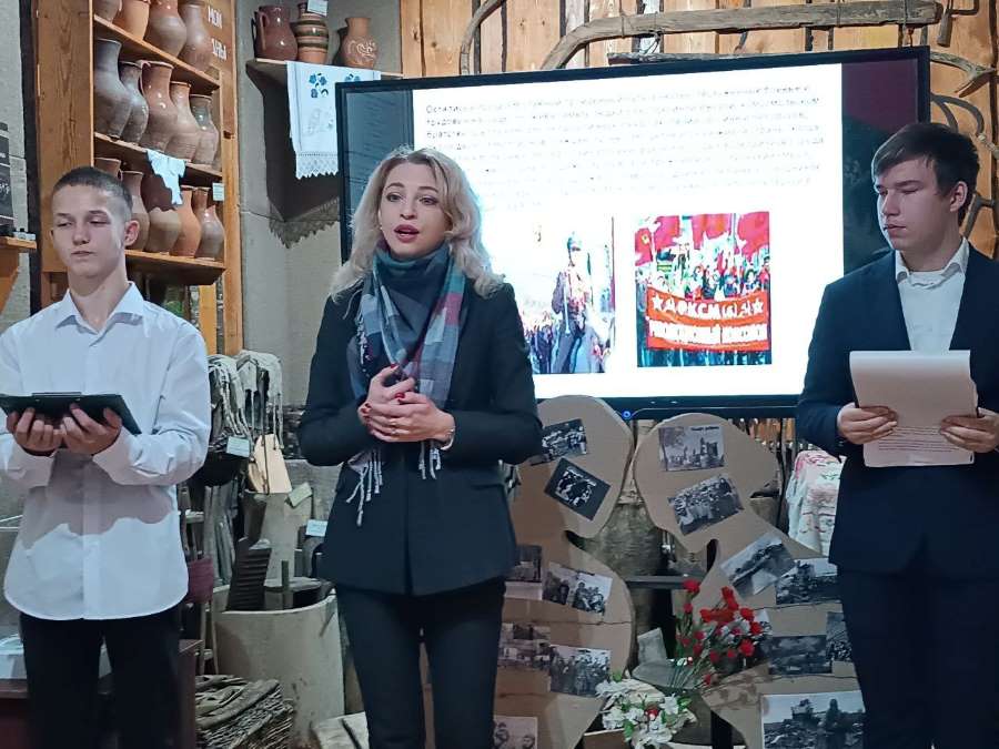 Открыла мероприятие смотритель музея и учительница истории Надежа Кудря. Она вспомнила, какой честью для молодежи в ее время носить красный галстук и значок комсомольца. За этими символами скрывалась готовность помогать родине и друг другу, уважать старшее поколение, следовать его заветам. Затем ведущие мероприятия рассказали о становлении комсомольского движения, боевых подвигах, вклада молодежи в мирную жизнь СССР. Оказывается, что улицы в Березино, по которым мы ходим, носят имена молодых героев всесоюзного движения. Многие из них были преданы своим идеалам не только в жизни, но и стояли в них до смерти.
