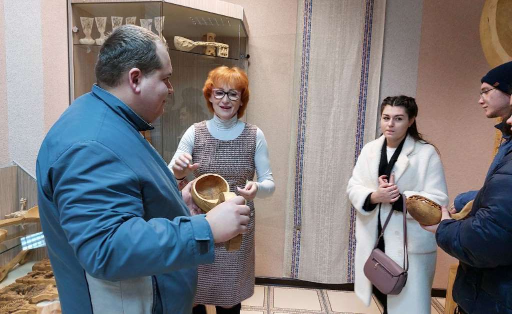 Сегодня они знакомятся с районом. В числе посещаемых — Березинский районный центр ремёсел. Именно здесь бренд района- деревянные ложки, самая большая в мире и самая маленькая, если не в мире, то у нас точно. Здесь и единственная в стране комната-музей деревянной ложки. И другие вставки, которые знакомят с мастерством и талантом березинцев.