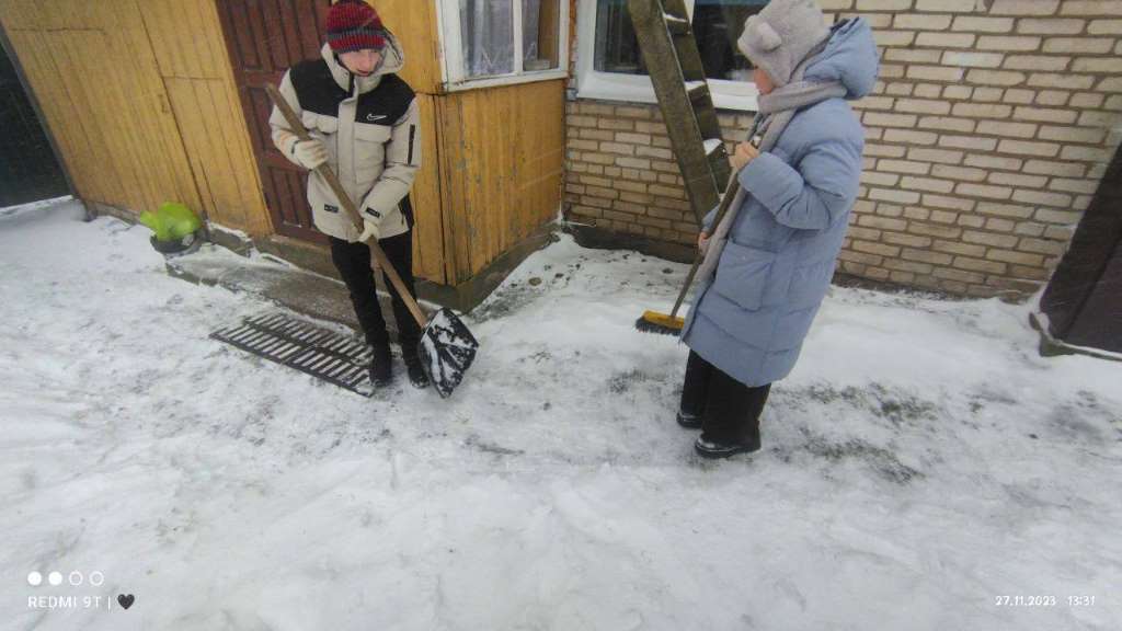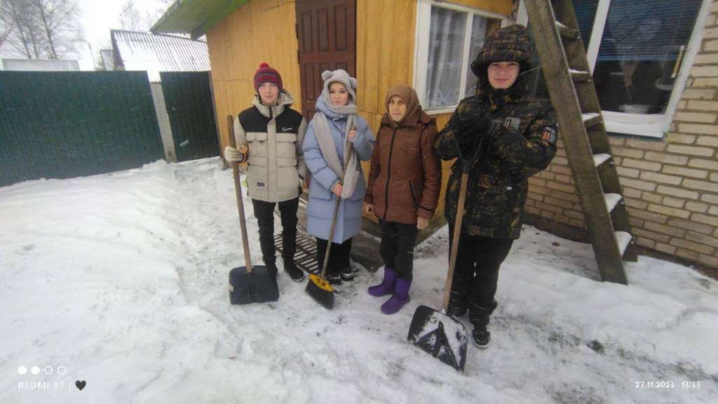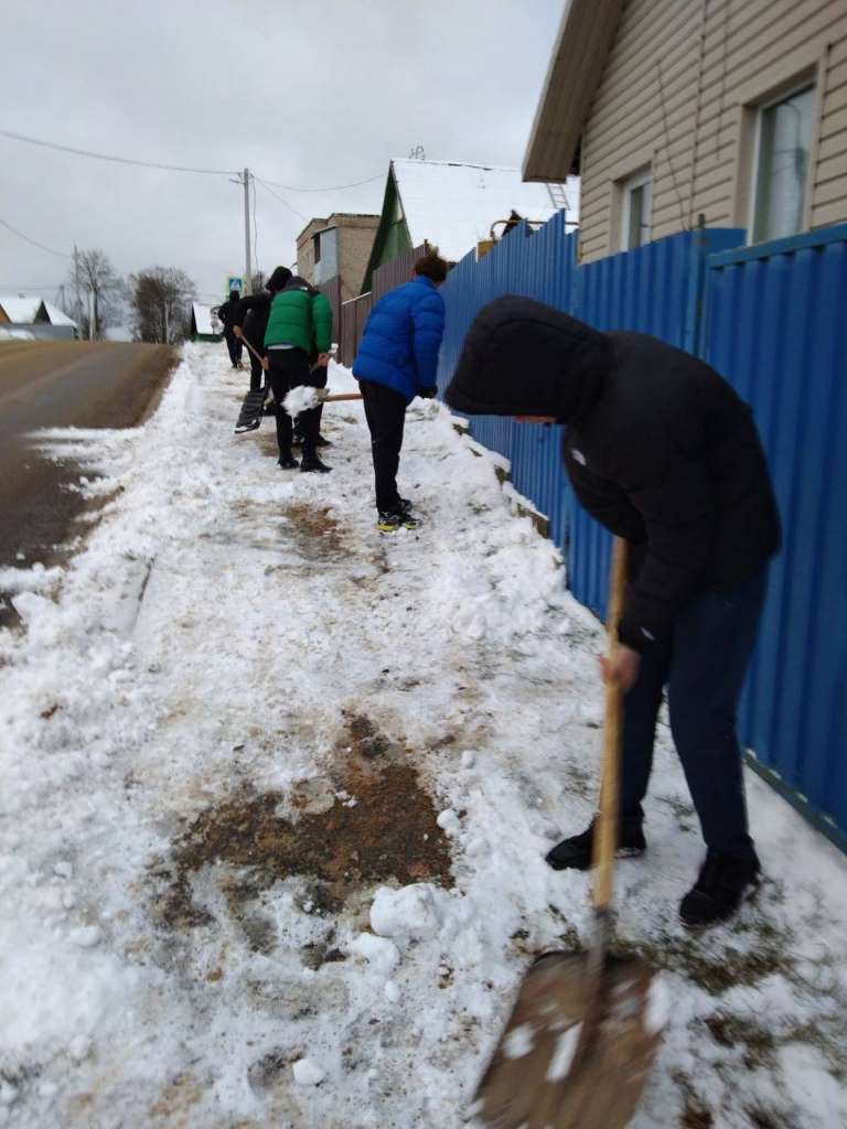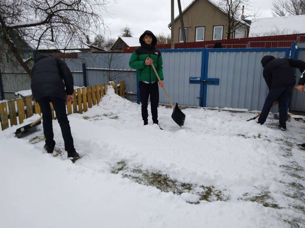 Члены ОО «БРСМ» ГУО «Лешницкая средняя школа Березинского района» оказали помощь пожилым жителям аг.Лешница в очистке дворовой территории от снега.