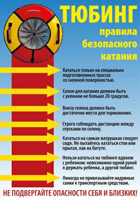 Это тот случай, когда здоровье и жизнь катающихся — дело самих катающихся. Чтобы сделать свой отдых приятным, а спуск на «ватрушке» безопасным, необходимо: