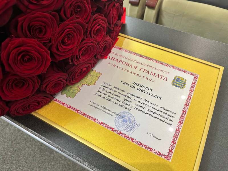 Почетная грамота Миноблисполкома вручена первому заместителю Минского облисполкома Сергею Левковичу. Награду вручил глава области Александр Турчин.