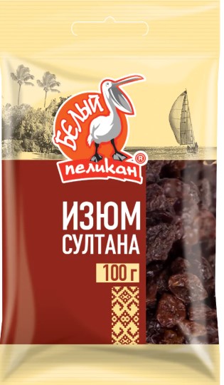 Изюм султана «Белый пеликан», массой 100 гр., ш/к 4811028000110.